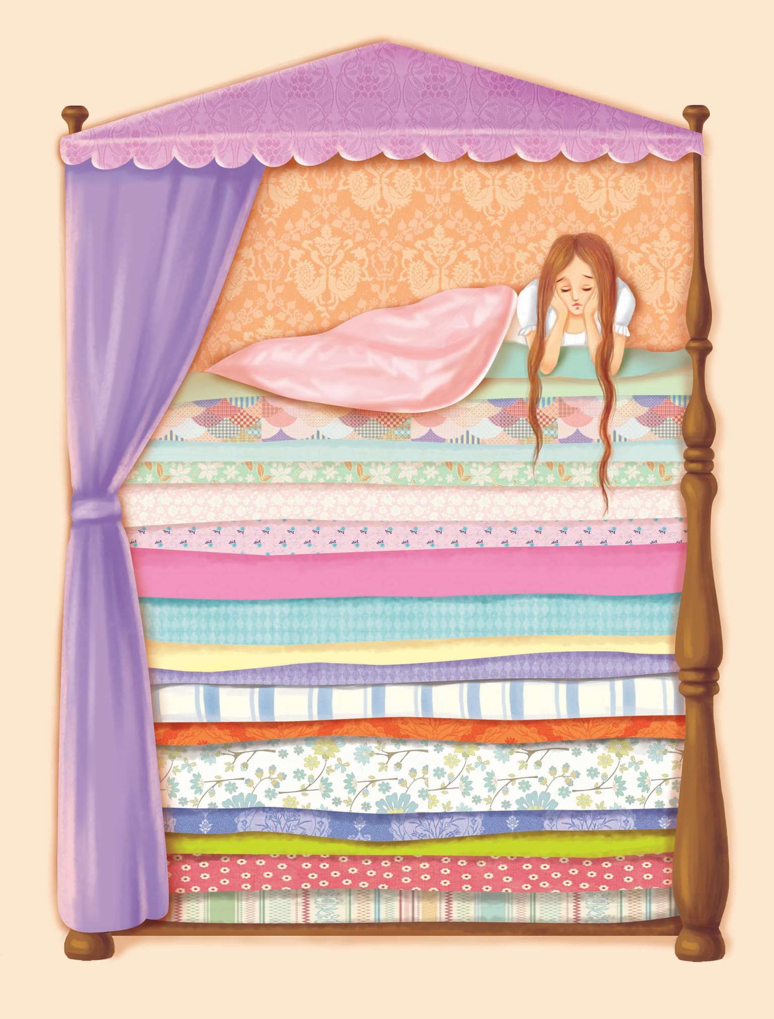 “好的,我们会弄清楚的!”年老的王后这么想,可是并没有说什么。她走进卧室里,把床上的床单、床垫等卧具都拿掉,在床板上放了一粒豌豆,之后她拿了二十床床垫铺在上面,又拿了二十条羽绒褥子铺在垫子上。