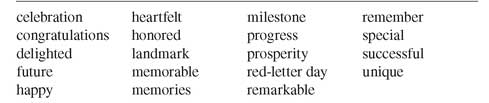 • Don’t include “joking” references to advancing age, incapacity, passing years, the difficulties of married life, becoming a fixture at the office. Clever cracks about age and marriage and length of service may evoke reluctant smiles, but they carry little warmth. Avoid negative greeting cards that assume all 21-year-olds can hardly wait to get to a bar, that “the big 4-0” is depressing, and that 50-year-olds are over the hill.