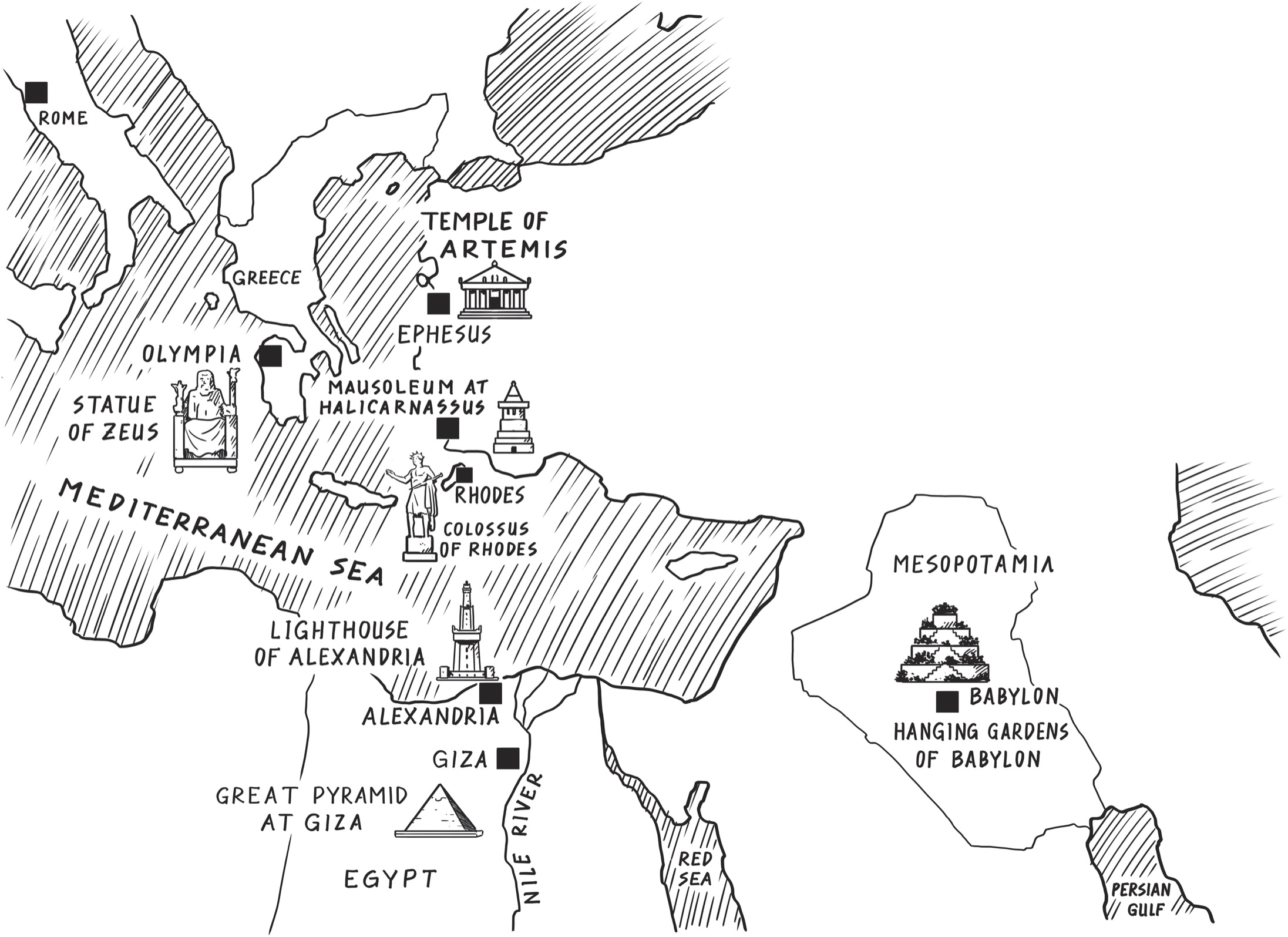 During their travels, they made lists of the most unusual and impressive sights. Not everyone wrote about the same places. But in the seventeenth century, seven of these marvels became known as the Seven Wonders of the Ancient World—even though most of them no longer existed. In fact, only one remains standing today. Still, you can imagine what they looked like by reading books like this one.