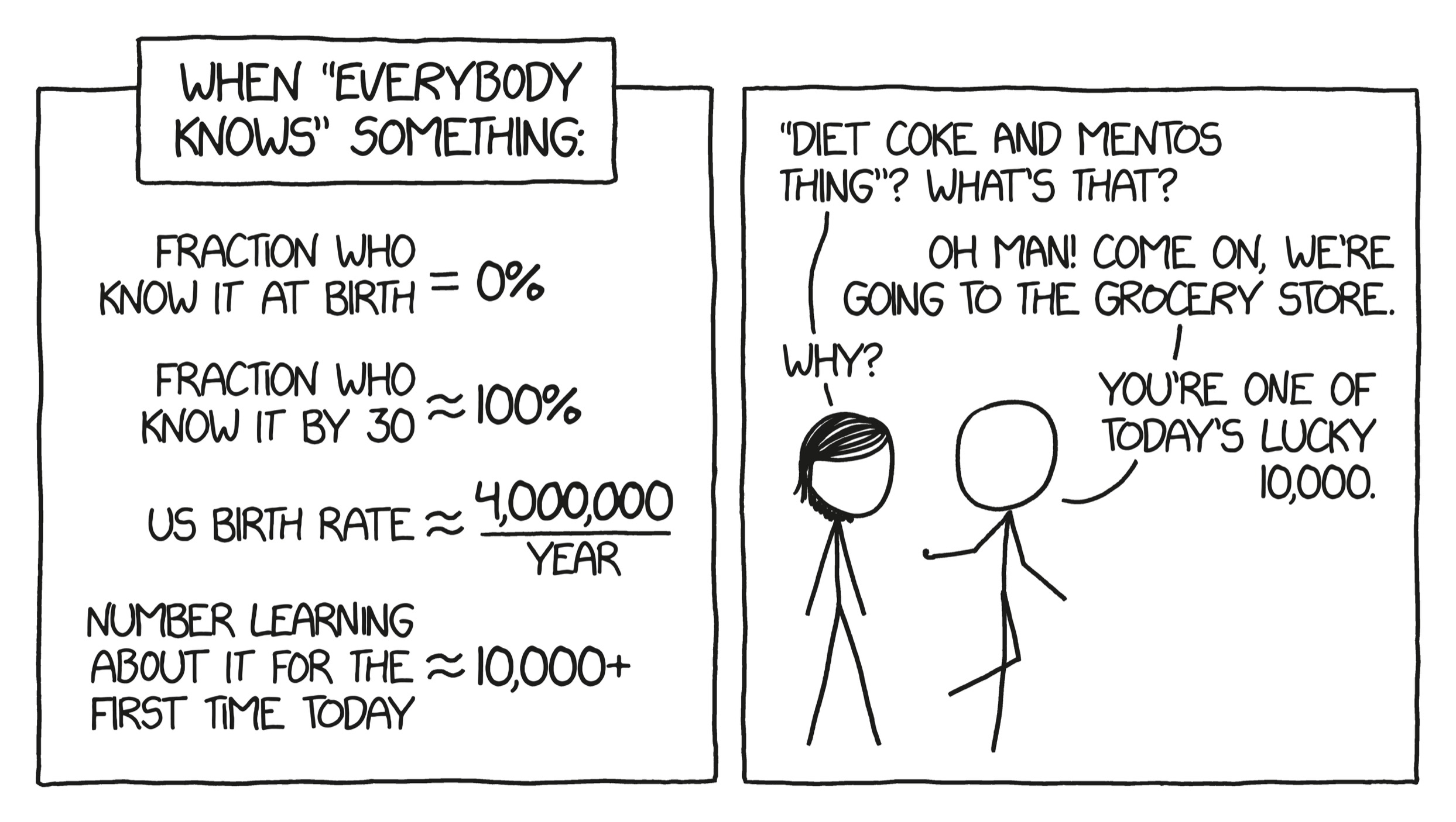 And even if you already know the right way to do all these things, it can be helpful to try to look at the world through the eyes of someone who doesn’t. After all, for anything that “everyone knows” by the time they reach adulthood, every day over 10,000 people in the United States alone are learning it for the first time.