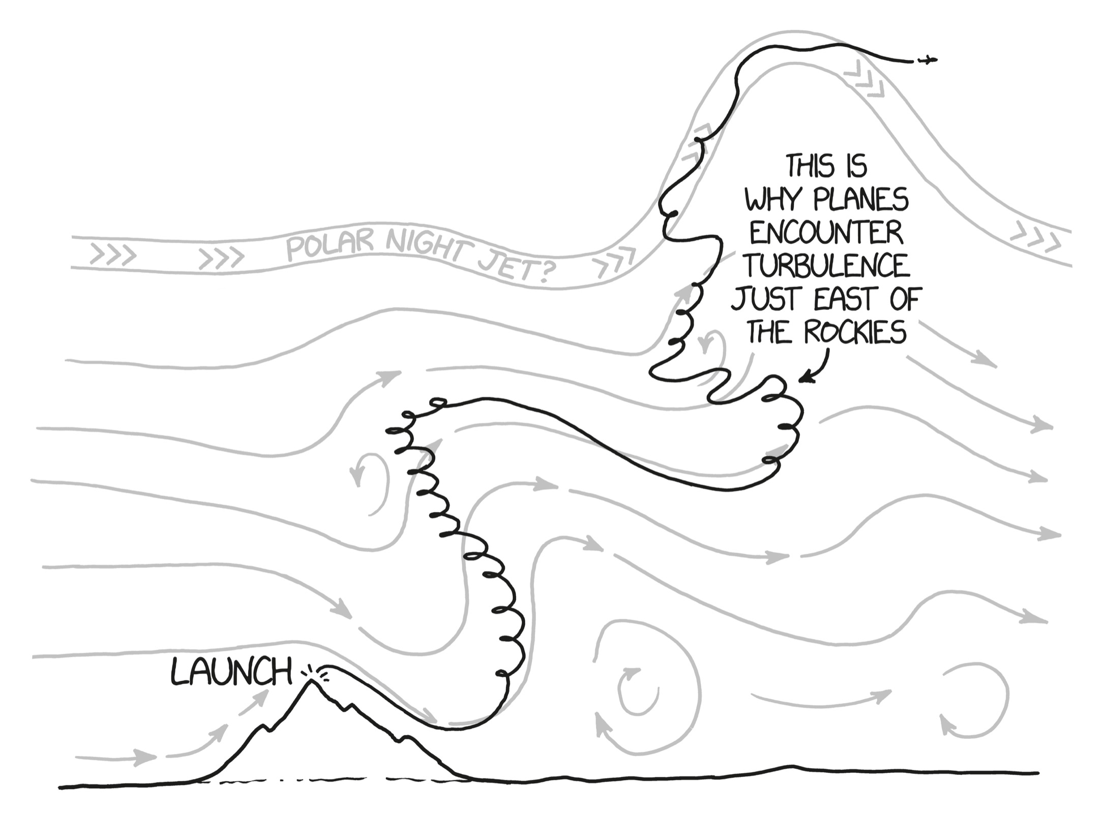 In 2006, glider pilots Steve Fossett and Einar Enevoldson rode stratospheric mountain waves to over 50,000 feet above sea level. That’s almost twice as high as Mt. Everest, and higher than the highest commercial airline flights. That flight set a new glider altitude record. Fossett and Enevoldson say they could have ridden the stratospheric waves even higher—they only turned back because the low air pressure caused their pressure suits to inflate so much that they couldn’t operate the controls.