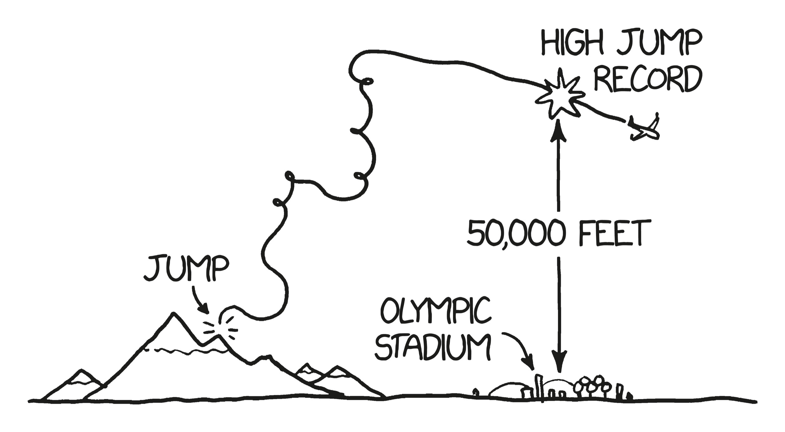 Of course, if you show up at a high jump championship with a vaulting pole, you’ll be immediately disqualified. * But while the judges might object, they probably won’t stop you, especially if you wave the pole around threateningly as you approach.