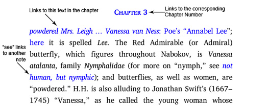 In this ebook edition of The Annotated Lolita , you will find two types of hyperlinks.