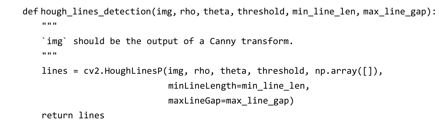 代码3-3 OpenCV提供的cv2.HoughLinesP函数