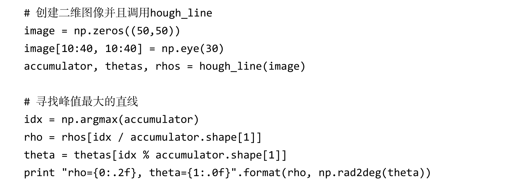 下面这段代码表示如何调用上面定义的hough_line检测直线。