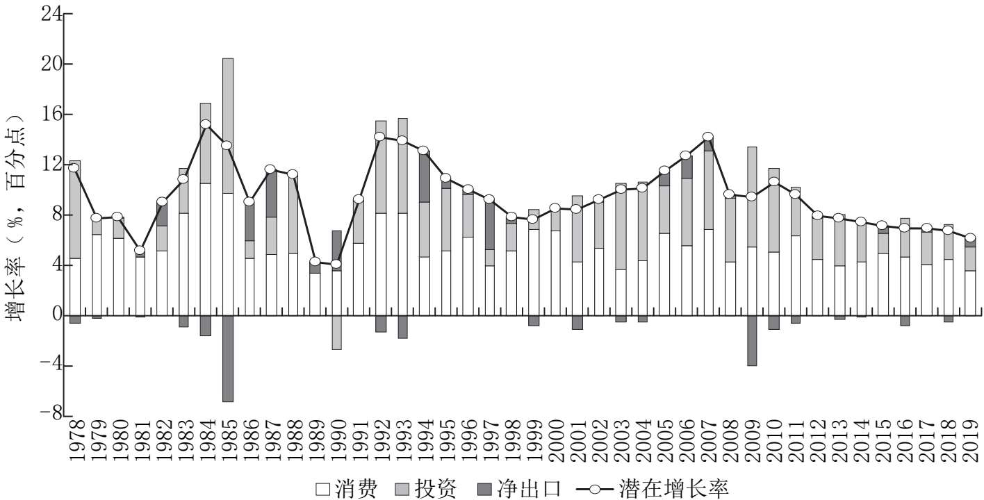 图2 潜在增长率及需求因素对GDP实际增长的贡献