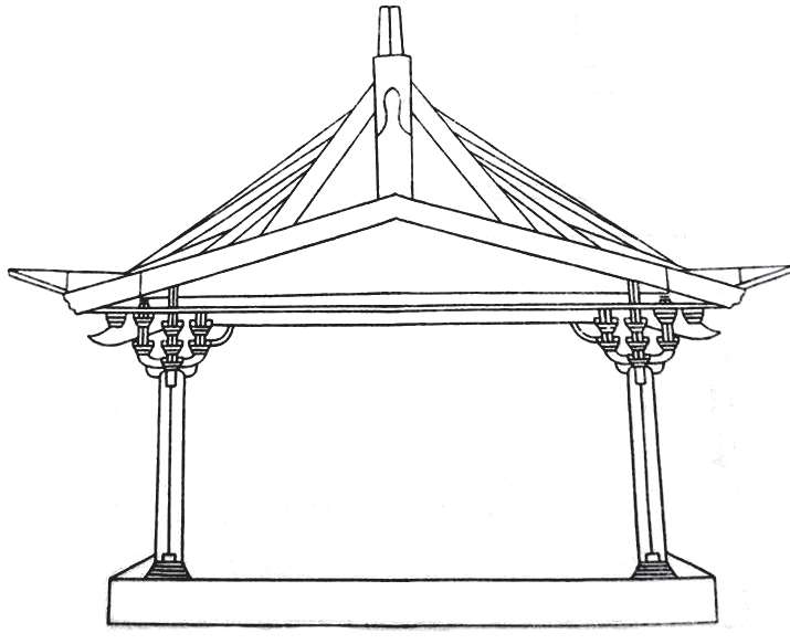 周朝以周平王东迁为界分为西周和东周两个时期,东周又以韩、赵、魏三家分晋为界分为春秋和战国两个阶段。陕西省岐山县凤雏村发掘出了早期西周建筑遗址,极具代表性。这是一组四合院式建筑,规模不大,却是我国已知最早、最规整的四合院建筑。根据遗址中出土的甲骨文推测,这是一座宗庙遗址。这座四合院建筑的主体为两座院落,前后院用长廊连接,长廊建在两个院子的中轴线上。院落四周围有一圈廊庑,房屋下铺设着排水的陶管和暗沟。值得一提的是,遗址中的屋顶已经使用了瓦。瓦一般是由泥土烧制而成,有拱形的、半个圆筒形的、平的,主要是用来铺设屋顶的。凤雏村遗址属于周朝早期遗址,瓦基本上用在屋脊和屋檐处,其余部分比较少。周朝中晚期的遗址中,使用瓦的数量就越来越多了,出现了全部用瓦铺成的屋顶,瓦的质量也有所改进。