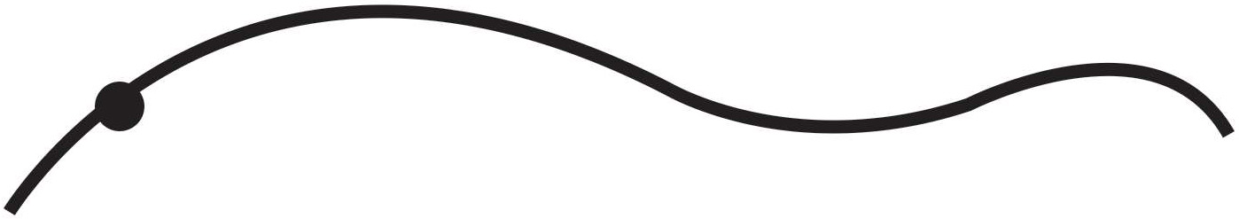 速度、速度的改变和力这几个概念在曲线运动中一般表示什么意思呢?我们先来看一看速度。如图1-8所示,一个很小的物体沿着曲线从左向右运动,我们通常把这样的小物体称作质点。如果曲线上的黑点表示这个质点在某一瞬间的位置,那么,速度在此时此地是怎样的呢?和之前一样,伽利略提供的线索可以帮助我们理解这里的速度。请再设想一个理想化的实验:质点在外力的作用下,沿着曲线从左向右运动,如图1-9中的黑点所示,在某个给定的时刻或位置,所有的外力突然停止作用。那么,根据惯性定律,运动应当是匀速直线的。在实际情况中,我们当然不可能使物体完全不受外力的影响。我们只能推测:“假设……,结果会怎样?”而后我们再根据推测所得出的结论以及其与实验结果是否相符来判断我们的推测是否合理。