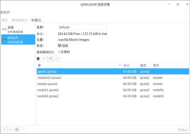 其中存储格式为qcow2,具有占用空间小和支持加密、快照、压缩等优点。