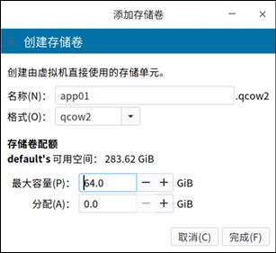 在图2-11所示的窗口中,单击“+”新建存储卷,进入图2-12所示的对话框。