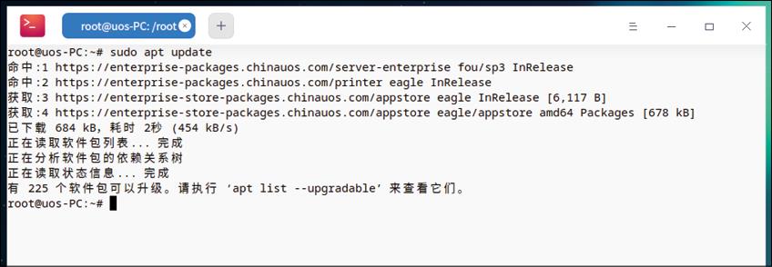 运行sudo命令,更新apt源的界面如图2-3所示。