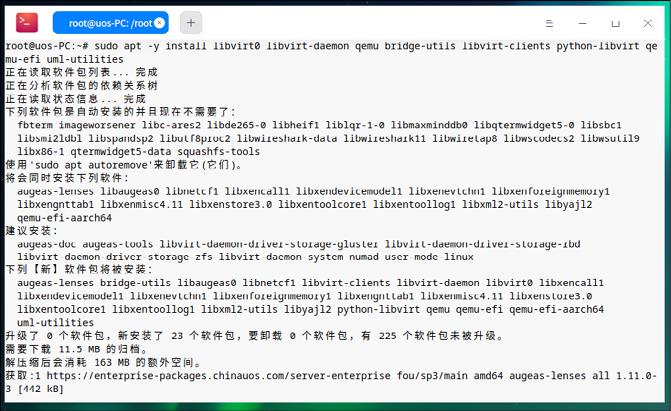 Advanced Packaging Tool(apt)是Linux下的一款安装包管理工具,是一个客户端-服务器系统。在安装KVM之前,需更新 apt 源,使用如下的sudo命令获取 root 权限。