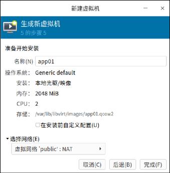 在图2-20所示的对话框中,输入虚拟机名称并选择加入的网络,单击“完成”。