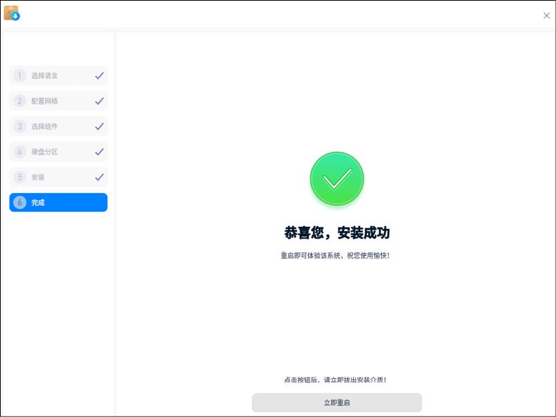 安装完成后,立即体验,选择统信UOS 20并启动。