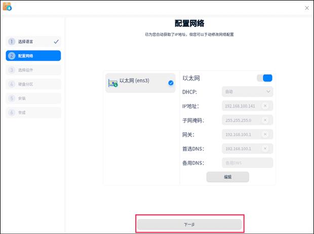 在图2-23所示界面中,配置网络,然后单击“下一步”。