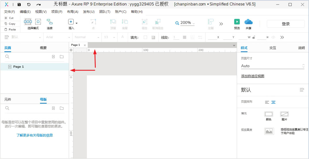 Axure RP 9的标尺默认出现在工作区的左侧和顶部,单位为像素,如图1-67所示。使用标尺可以帮助用户更加精准地设计作品。