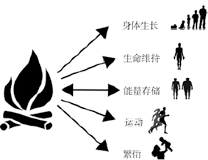 图2-1 身体从食物中获取能量之后的5种分配方式
