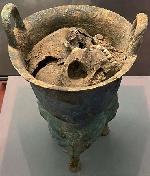 秦子吓了一跳。“这是……?”照片里,一件青铜器里装着一颗人头。