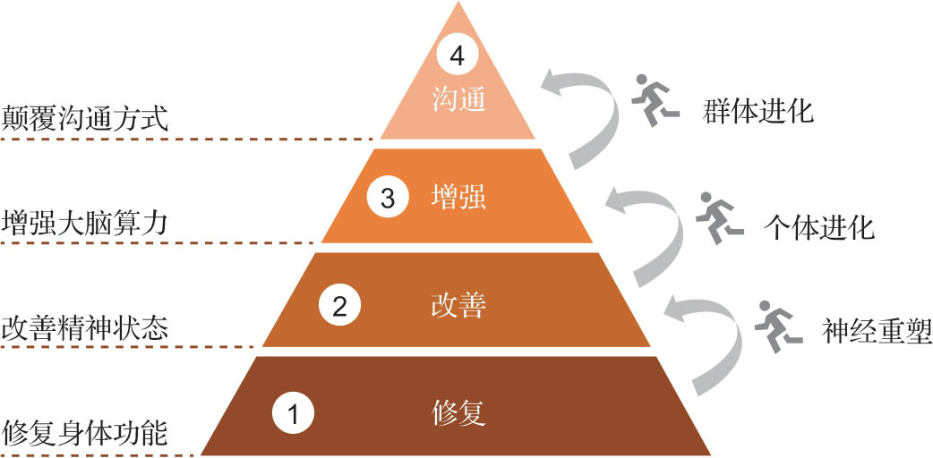 这四层金字塔的应用要是都实现了,那我们人类真的就是靠技术的力量实现了下一步的进化。