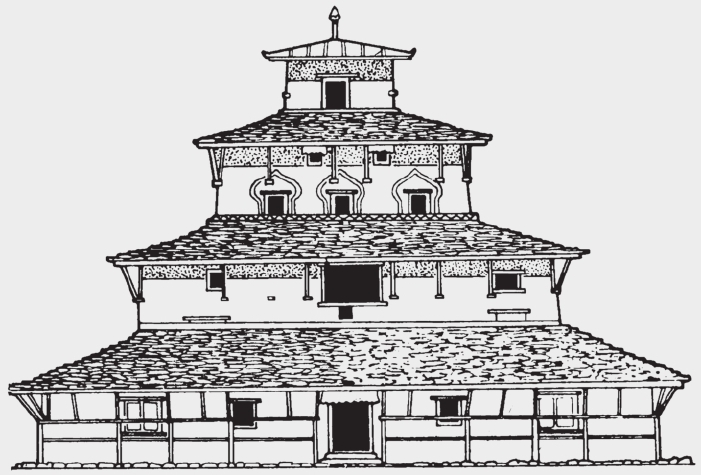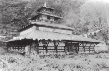 在分布特点上,这几座佛寺均位于中尼边境的吉隆镇附近,而在吉隆县城宗喀镇一带则看不到这种楼阁式的佛寺建筑,在西藏其他地区,也基本不见此类佛寺建筑,这表明它们有着明显的地域特点。唐释道宣在《释迦方志》中记载尼婆罗国“城内有阁,高二百余尺,周八十步,上容万人。面别三叠,叠别七层,徘徊四厦,刻以奇异,珍宝饰之”。这种式样的佛寺,虽然所记的层数不同,但与吉隆镇发现的这三座佛寺具有相同的特点,即都是楼阁式的佛寺建筑。所以,吉隆发现的这几座佛寺建筑,应当正是《释迦方志》所载的尼泊尔楼殿式样的佛寺。过去曾有学者提出,尼泊尔寺庙中的层塔式建筑,可能受到中国的影响,是中国古代亭阁楼塔影响的产物,或许由此可见一斑。
