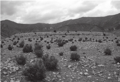和老李分手之后,我一个人进入墓地深处,一面观察不同墓丘的建筑,一面寻找各种遗迹现象。查木钦墓地是一处规模相当宏大的墓地,以一条自然的山沟为界,可以将墓地划分为A、B两区。A区墓葬分布在查木钦村北面的山麓冲积扇上,共计101座墓葬,主要的建筑遗迹如房屋、动物殉葬坑以及石狮、石碑都在这个区域发现,看来应是主墓区。B区墓葬位于A区东侧的山麓坡前冲积扇上,共计34座墓葬,墓葬的规模也远不如A区宏大,可能是陪葬区。查木钦墓地给我的第一印象,是选址极其讲究,北面依山,南面望水,墓地前低后高,逐次抬升,左右皆有山麓佐护,形如一把下凹的座椅。在我所考察过的吐蕃墓地中,以查木钦墓地最符合所谓“风水茔地”的标准。联想到西藏古史的记载,当年文成公主进藏时,曾经把中原地区的风水之术带到了吐蕃,并且在营建大昭寺和其他所谓镇边神庙中加以运用。可以想见,吐蕃墓地的选址也一定程度受到这种风水之术的影响。