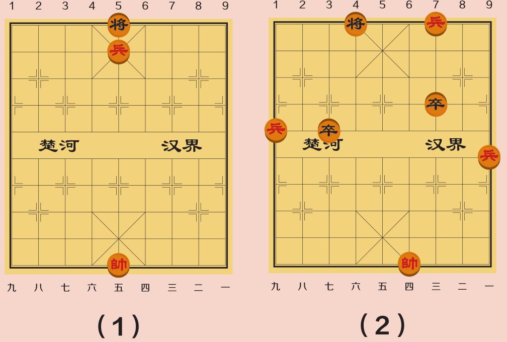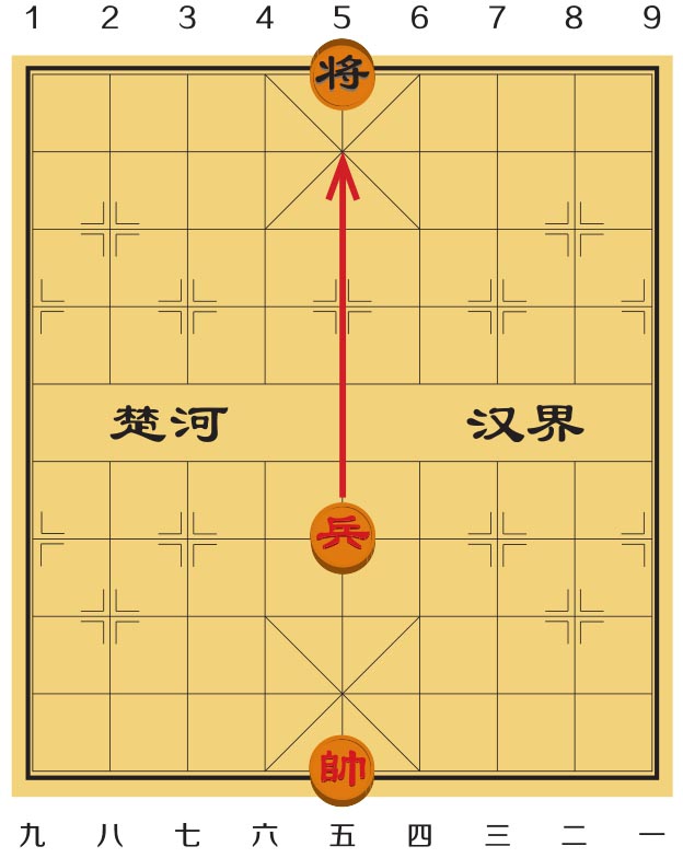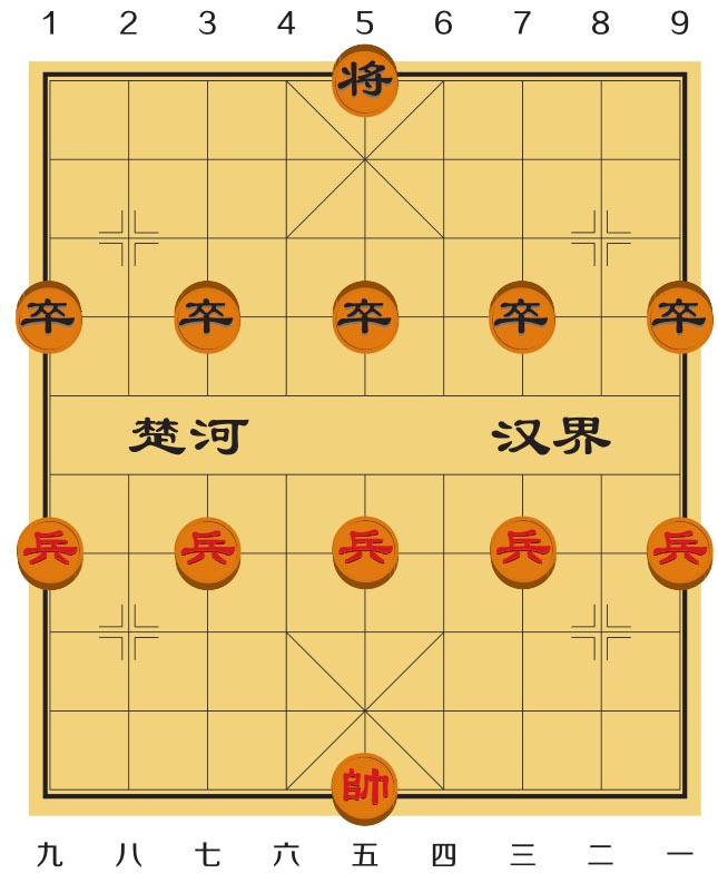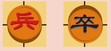 兵和卒有一个弱点,就是永远看不到自己的身后,所以它们只知道向前移动,不会后退,在没有越过河界时,互相之间也看不见。这时候它们最弱,只能控制自己前方的1个点,只有1岁。