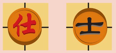 两个仕(士)一左一右位于帅和将的身边,它们在九宫里保护着帅和将。