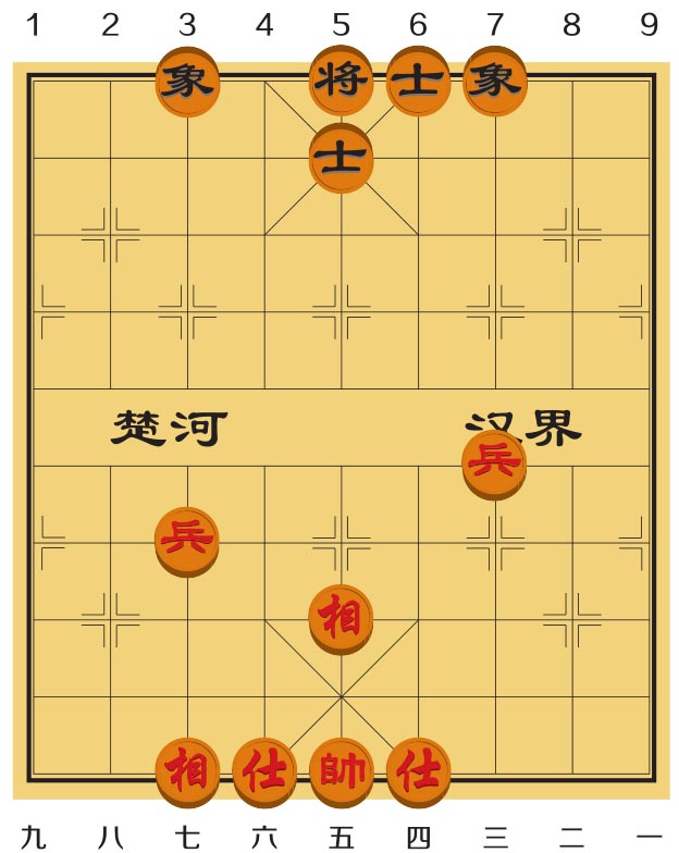 (5)请动动脑筋,替黑方走出正确的着法,阻止红兵越过河界(如右图)。