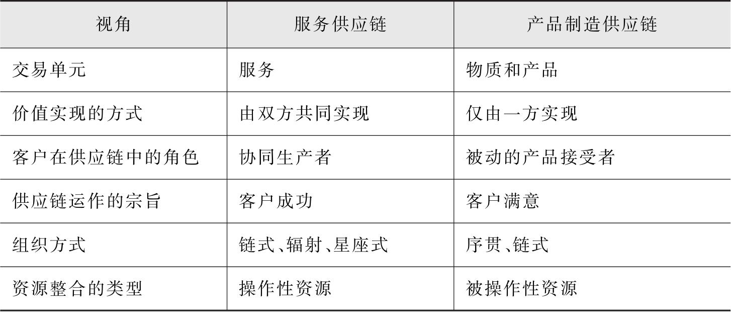 表1-1 服务供应链的主要类型、代表学者及其主要贡献