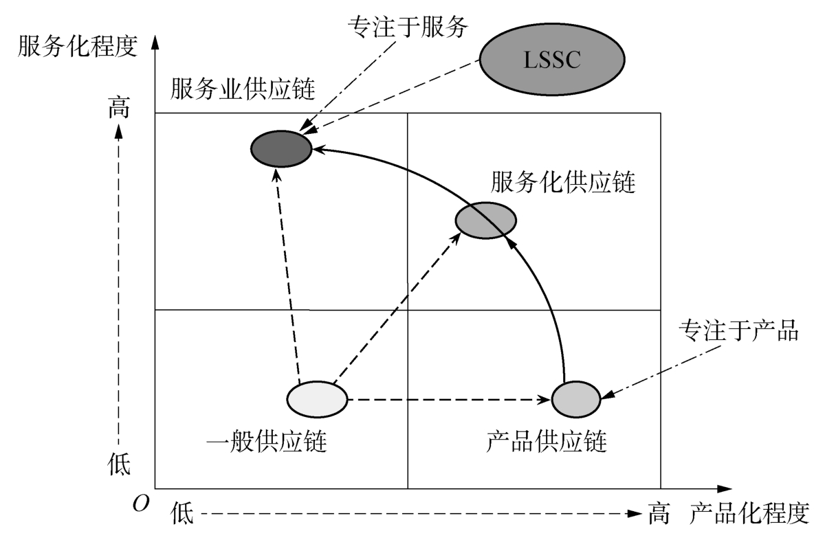 薛晓芳等(2014)基于产品服务系统的理念构建了新型的物流服务供应链模式——“产品服务商—物流服务集成商—客户”,并且发现新型的供应链通过实现LSSC集成商对物流、服务和销售功能的集成,有效地降低了牛鞭效应,大大缩短了LSSC的长度,提高了链之间的紧密性。