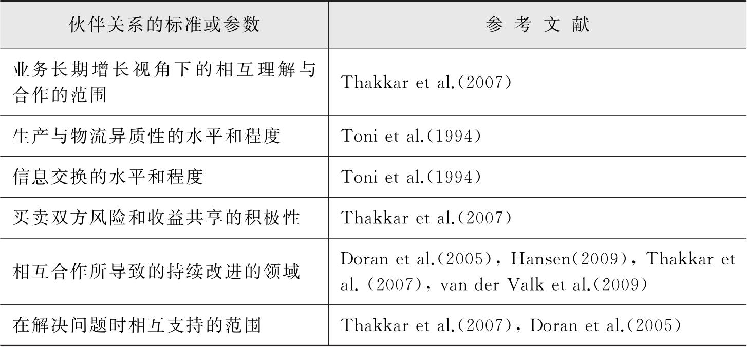 表1-4 服务供应链中合作伙伴关系的评估指标