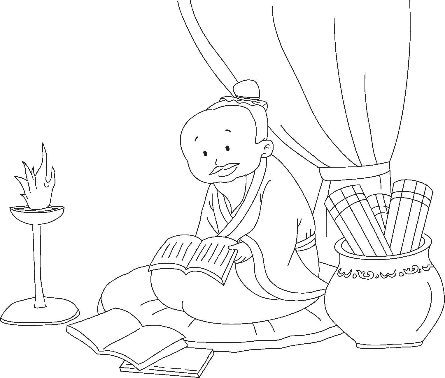 太阳下去了,就燃起油灯,一年到头,经常在那里勤奋刻苦地读书。