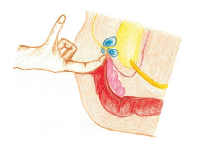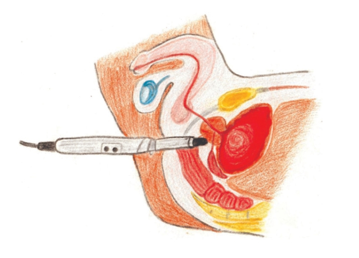 (1)肛门直肠指检: 是前列腺增生患者最简便及必要的检查。通过检查可以了解前列腺大小、外形、有无压痛,是否存在前列腺结节,从而对前列腺疾病进行初步诊断和筛查(图3-2)。需要注意的是检查前应先排空尿液。