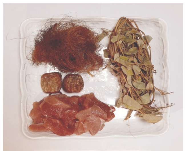 4)食疗方推荐金钱草玉米须瘦肉汤(图3-5),可清热化湿利尿。金钱草20g,玉米须10g,瘦肉300g,蜜枣2粒。金钱草、玉米须稍加清洗,瘦肉洗净、切块飞水。所有材料加入汤煲中,加1500~2000mL清水,武火先煲15分钟,改文火煲45分钟,加盐调味。