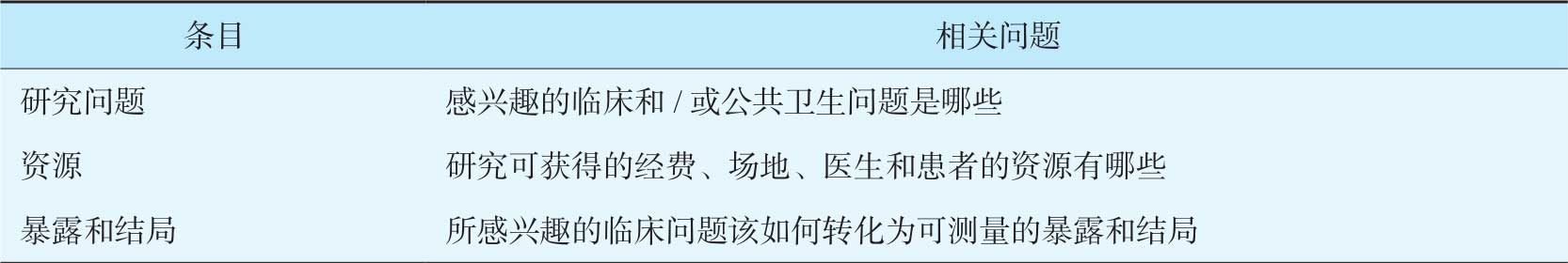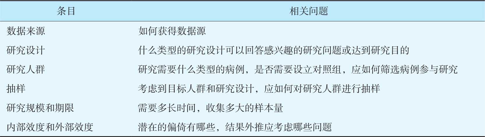1.研究前需要确定的问题 在一项研究开始前,是否采用登记研究,应先明确以下系列问题,见表4-3。