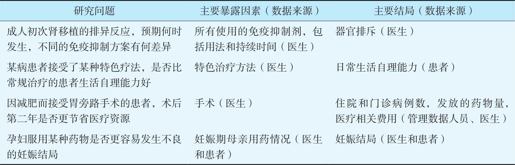 表4-4 研究问题和主要暴露及结局的示例