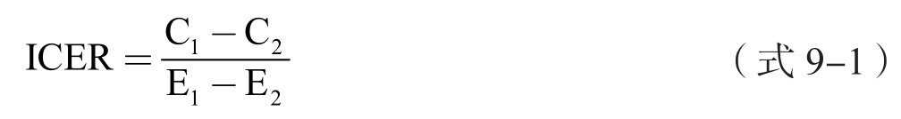 其中,C 1 为干预措施成本,C 2 为对照措施成本,E 1 为干预措施健康产出,E 2 为对照措施健康产出。