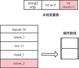 字节码指令前面的编号我们暂时理解为行号。在本例中,行号0到7的字节码指令完成的工作是将变量a自增后的值赋值给result变量。下面将详细分析这几条指令的执行过程。