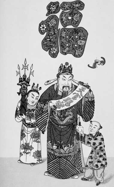 如今谁都知道,福、禄、寿在天为三星,在神为三神,在人间化为三个人像;也有把蝙蝠作为福的化身,梅花鹿作为禄的代表,寿星则手持寿桃。不过这都是后来才兴起的。若在先秦时代,福禄寿三者却还没有划分那么清楚。例如《尚书·洪范》便说:“五福,一曰寿,二曰富,三曰康宁,四曰攸好德,五曰考终命。”把长寿、富庶、安宁、好德和善终都列入“福”字之内。现在有些人家在门口贴上“五福临门”字样,追溯起来,就是这五种,包括许多好的内容。