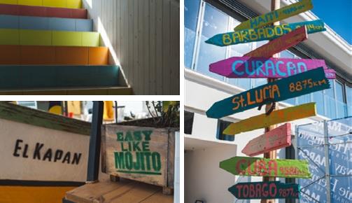 菜单设计和餐厅内部空间设计,选用了鲜艳的对比色,以增强食欲和视觉上的冲击力。菜单页面以不同的颜色区分,与食物套餐和餐厅鲜艳的内部环境保持一致。为了丰富整体品牌视觉、增加趣味性,菜单上加入了很多线描的食物图案和常用的图例。格纹地砖的设计,和大多数家居厨房地砖设计手法一致,增加了亲和力和熟悉感,让人进入这个空间能快速适应环境并放松下来。茅草装饰和竹编吊灯的运用,与品牌所要传达的自然气息相呼应,从而构成整个品牌的视觉传达系统。