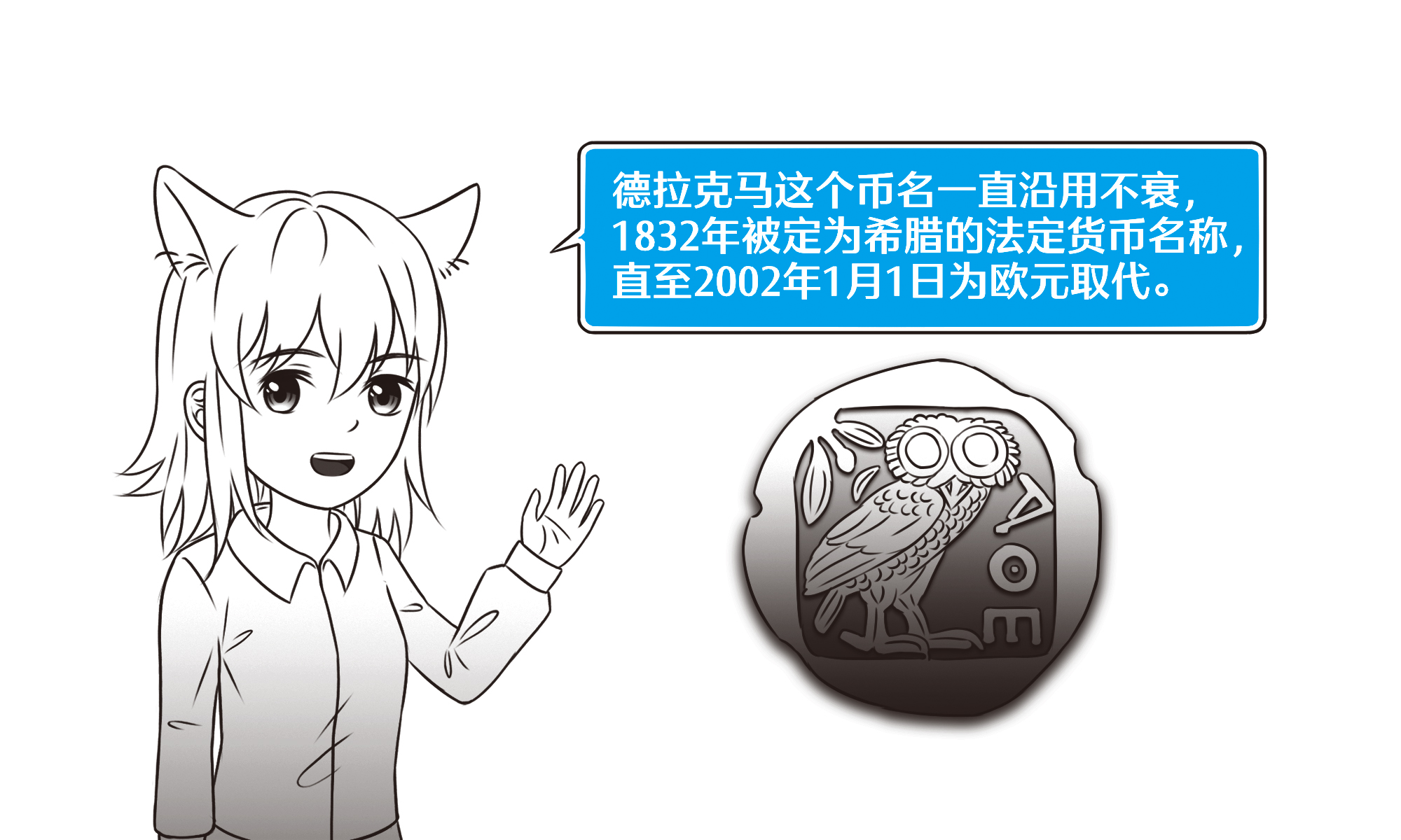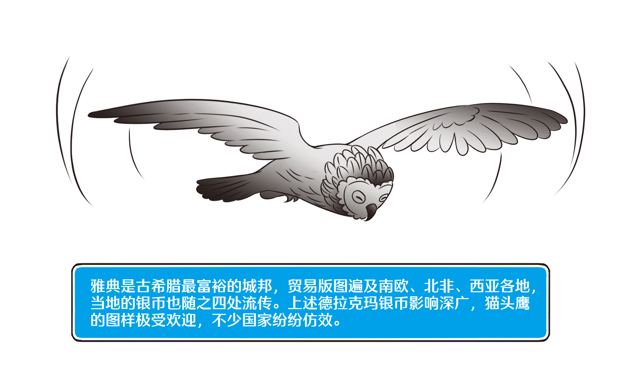 公元前525年雅典出现的德拉克马银币,正面是雅典女神,背面为护鸟猫头鹰图案。由于这种货币流通广泛,“带猫头鹰去雅典”成了当时地中海各国间通行的俗语。