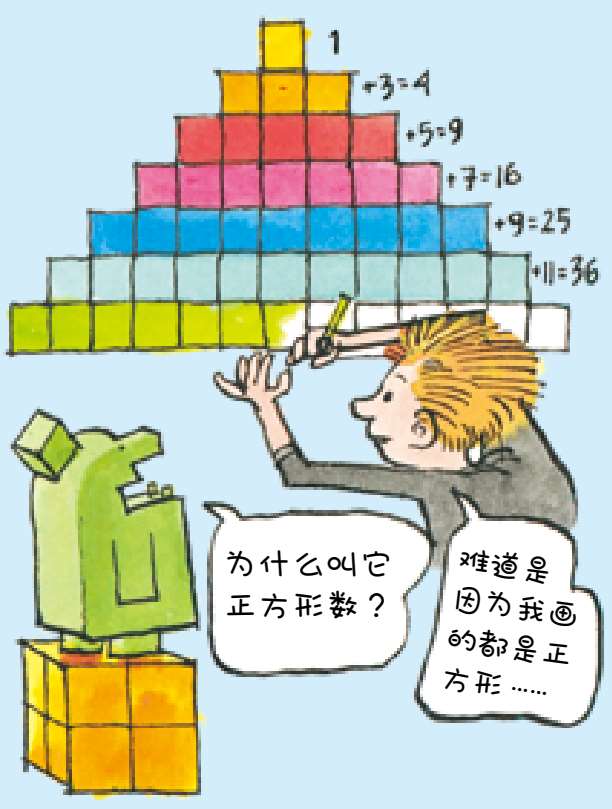 现在我们来看看这些数字:1,4,9,16,25,36……(省略号代表这一数列可以无限延伸下去。)找到规律了吗?
