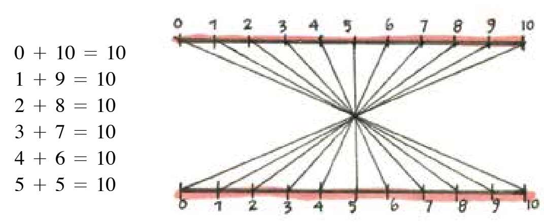 画出不平行的两条直线。用尺子标出每一厘米的刻度。设定一个数字(比如17),然后依次连接刻度之和为这一数字的两点。