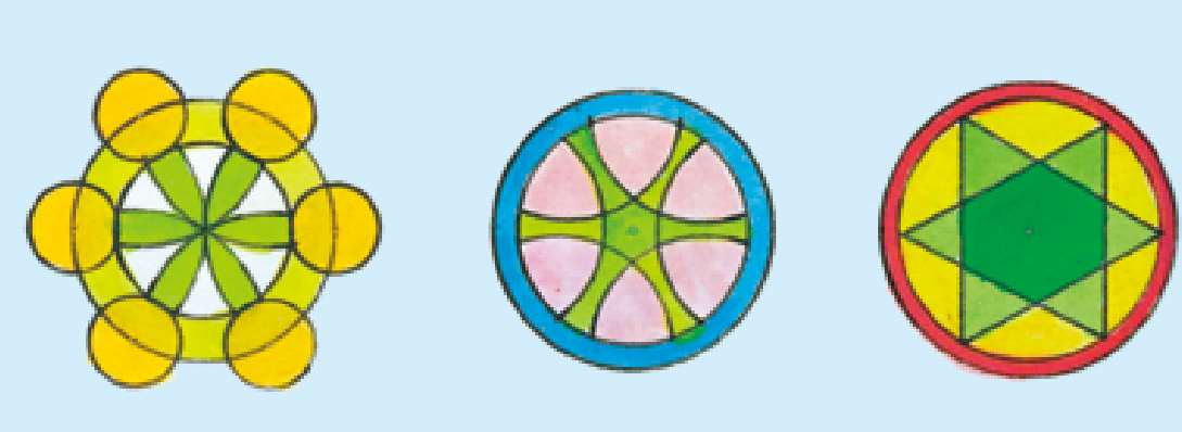 有了圆和六等分点作为基础,你可以设计出更多图案。下面就是一些例子。