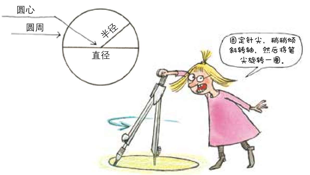 利用圆规可以画出标准的圆。圆是一个闭合的圈,从圆心到圆周上任意一点的距离完全相等,这一距离就是圆的半径。两条半径的长度之和等于一条直径。