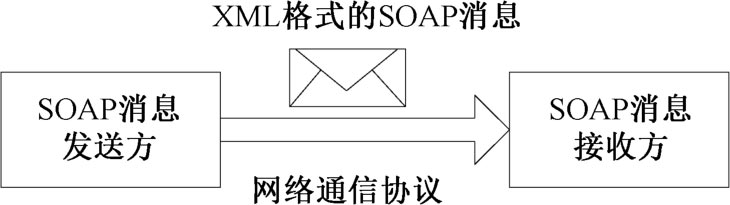 最简单的SOAP消息处理模型如图2-1所示:XML格式的SOAP消息通过某种网络通信协议(如HTTP、SMTP等)在SOAP消息发送方和接收方之间传送。
