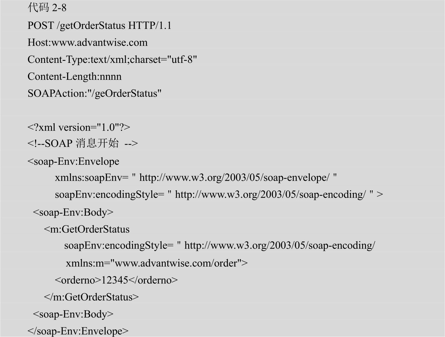 代码2-8是用HTTP POST方法表示的SOAP请求。