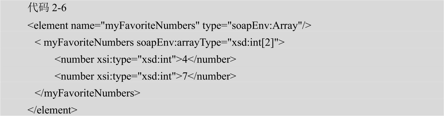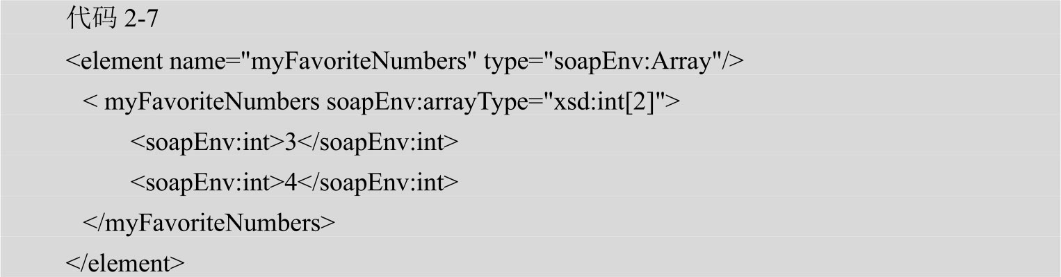 代码2-6中数组元素的类型也可以直接通过“soapEnv:arrayType”属性来指明,如代码2-7所示。