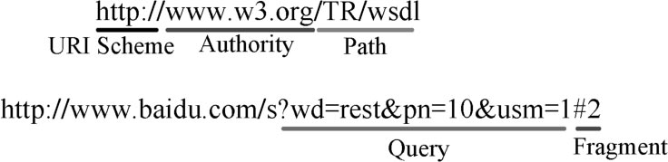为每个服务设计一个URI来对服务进行唯一标识,以便客户端程序访问服务。如图2-8所示为URI的一个简单示例。