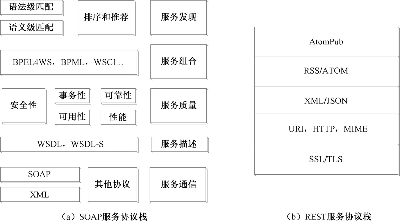 图2-9 SOAP服务协议栈和REST服务协议栈对比